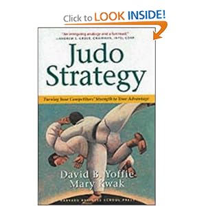 David Yoffie, profesor de estrategia y tecnología de la Universidad de Harvard escribió hace unos años un magnífico libro, Judo Strategy, donde describe cómo pequeñas empresas han conseguido posiciones de dominio internacional utilizando estrategias competitivas similares a las del judo, dominando el terreno de juego en base a rapidez y flexibilidad, en lugar de tamaño o potencia financiera. La clave del éxito está en un conjunto de movimientos estratégicos que persiguen sorprender e inestabilizar al competidor, buscando un punto de apoyo para derribarle.